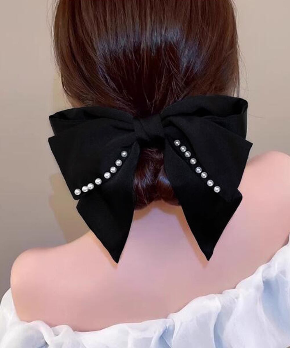 エレガントな大きめリボンに上品なフェイクパールをあしらったヘアクリップ。