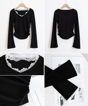 肌チラが可愛い、レース使いの長袖トップス。