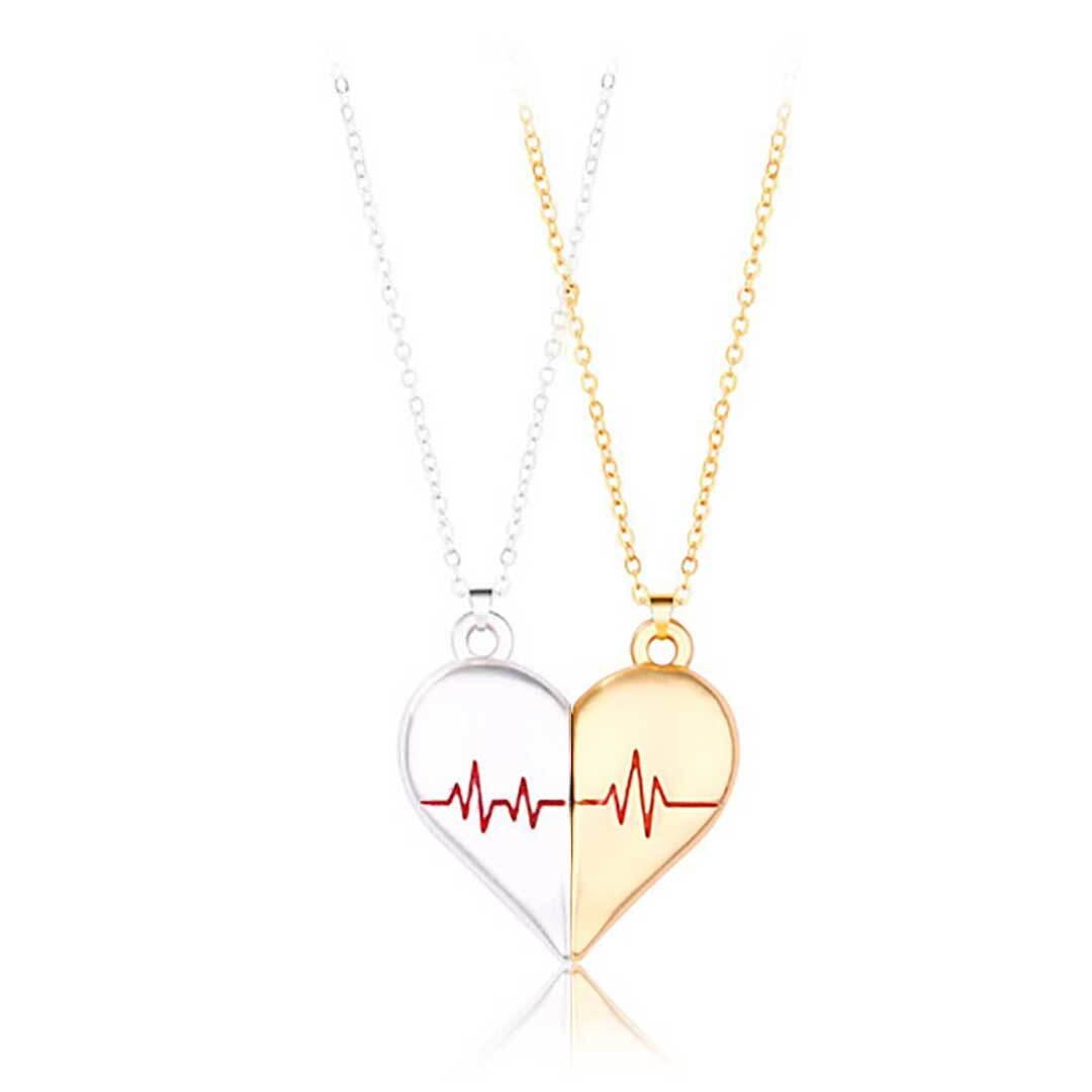 ペアネックレス カップル ハート ーVer2ー 心音 3カラー 磁気 ハートペンダント カップルネックレス (AI-0155)
