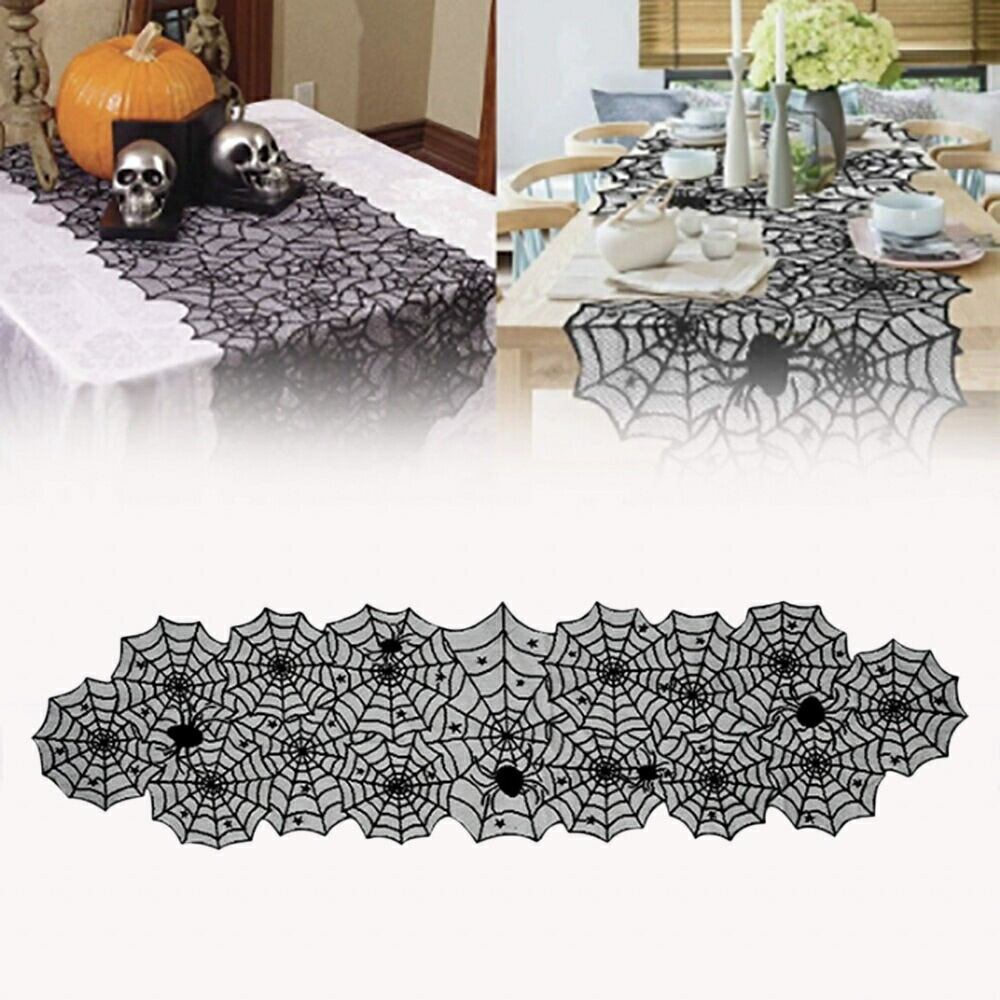 ハロウィン テーブルクロス 蜘蛛の巣 テーブルランナー レース くも (AI-0160)