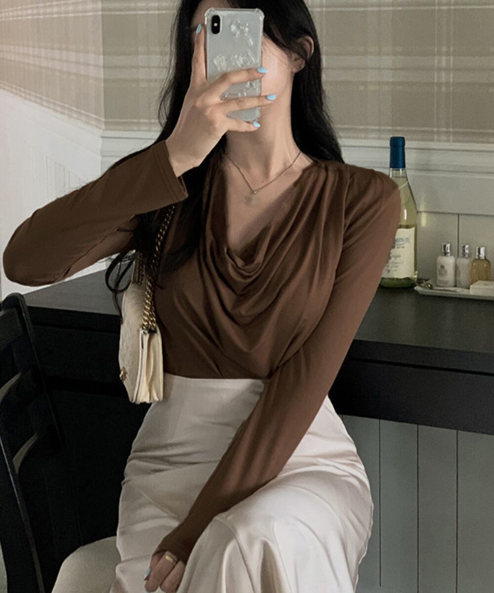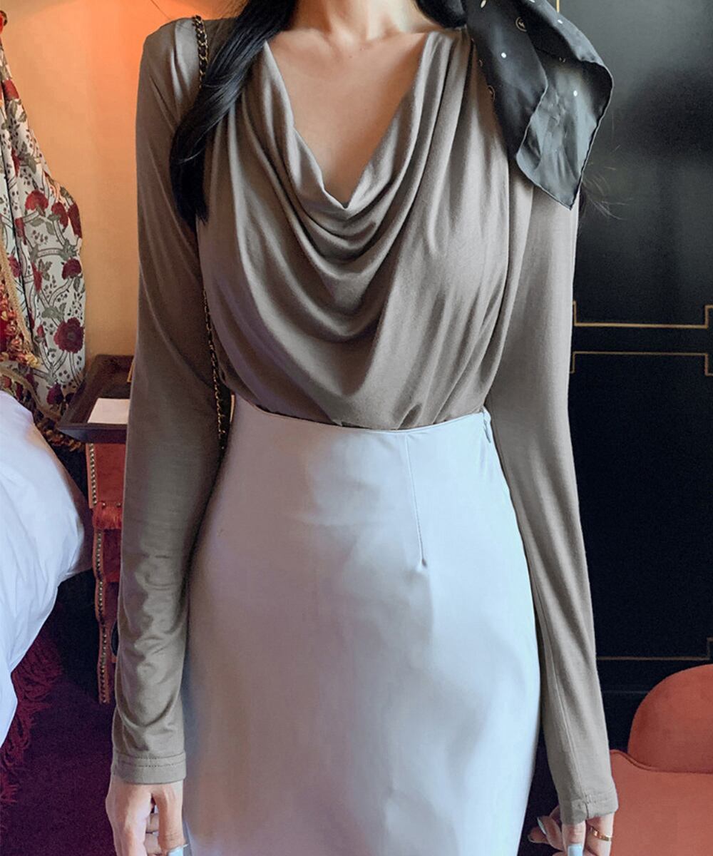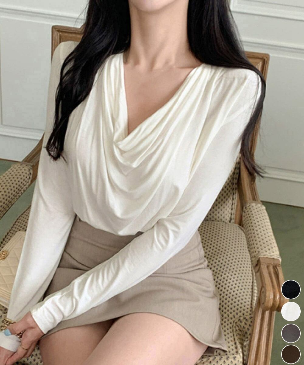 ドレープネック Tシャツ 長袖 トップス 春 秋 (SK-0602)