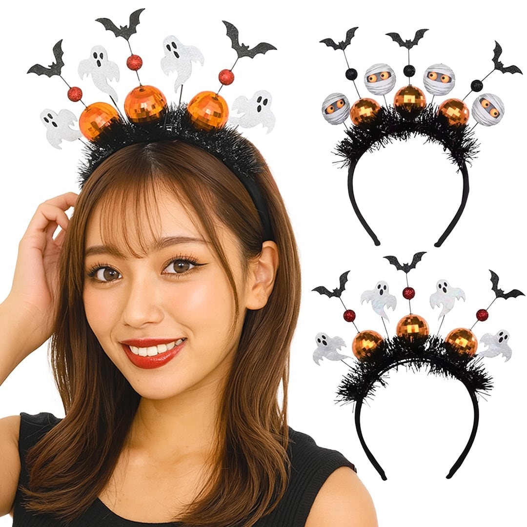 ハロウィンカチューシャ オレンジボール 2種のおばけ カチューシャ アクセサリー ヘアアクセサリー (AI-0176)