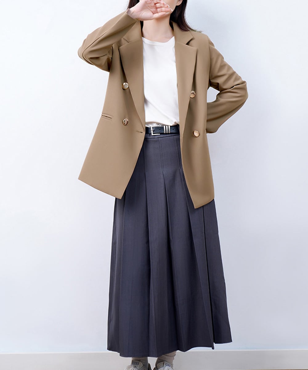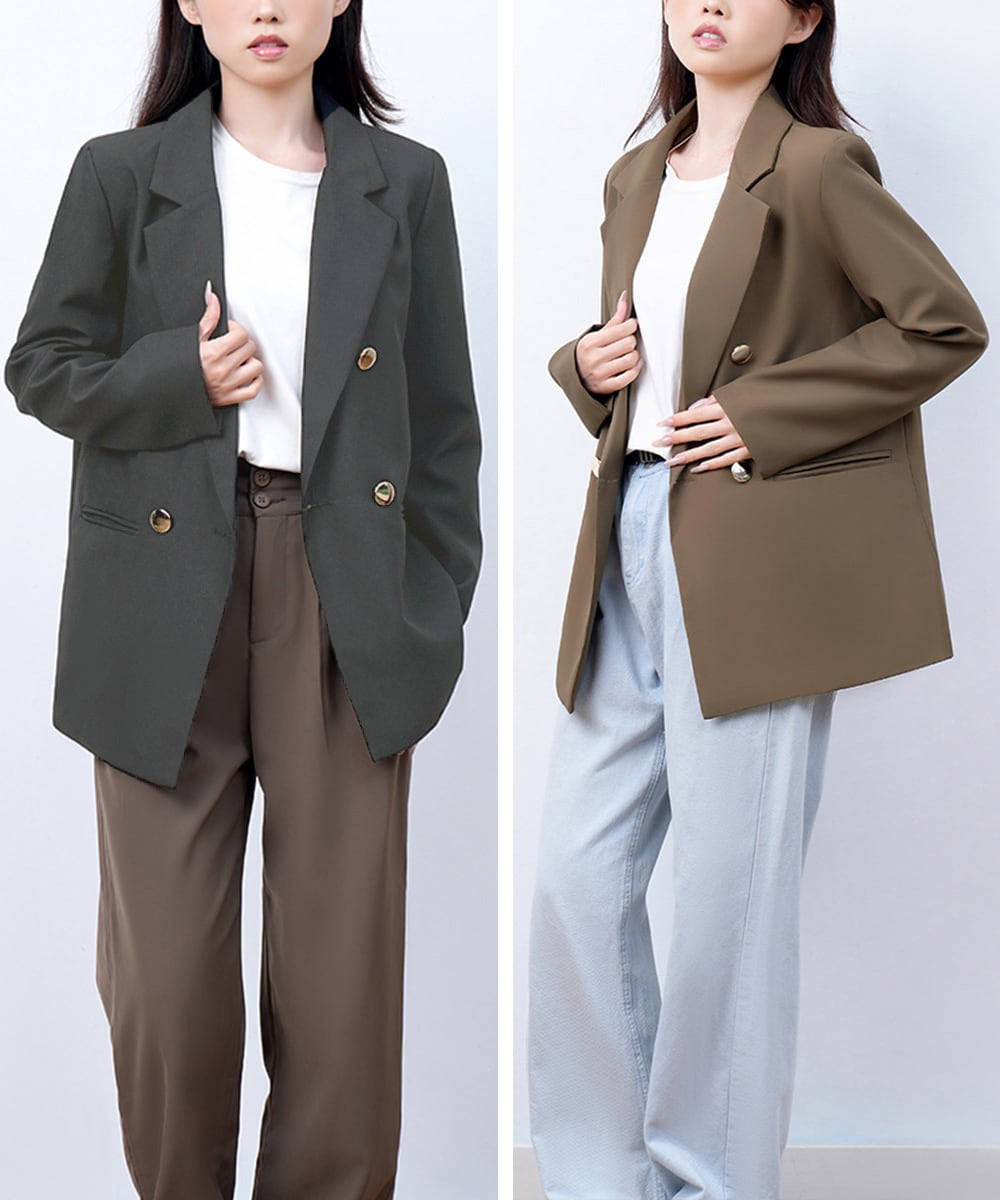 コーディネートにヘルシーな抜け感をプラスするダブルテーラードジャケット。