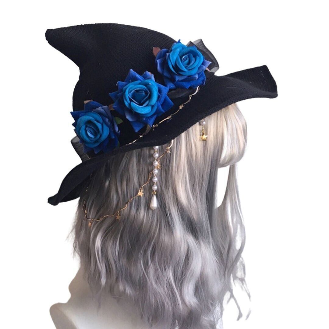 ハロウィン 薔薇 魔女ハット ーVer2ー 帽子 レッドorブルー トンガリハット リアル 魔法使い ウィッチ