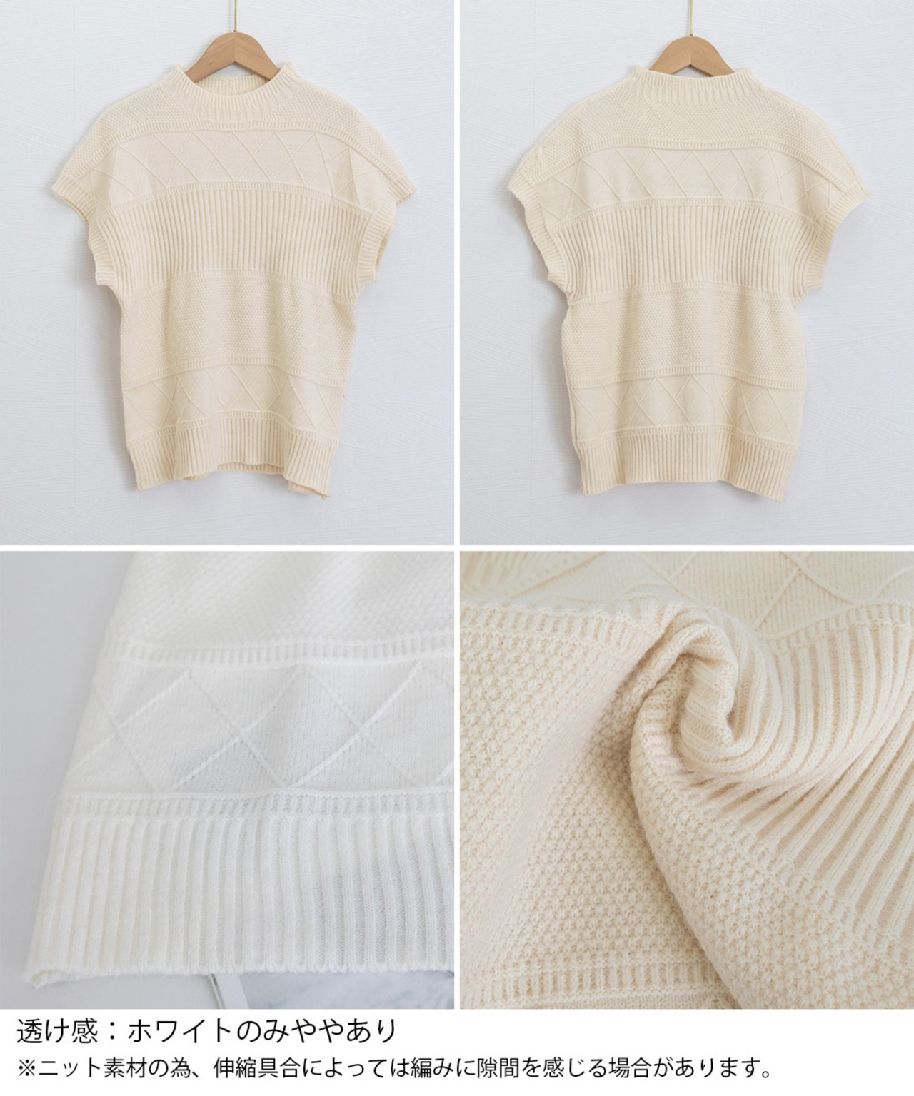 ※ニット素材の為、伸縮具合によっては編みに隙間を感じる場合があります。