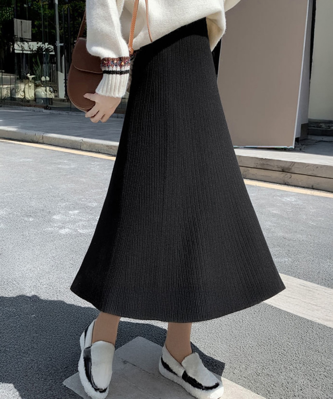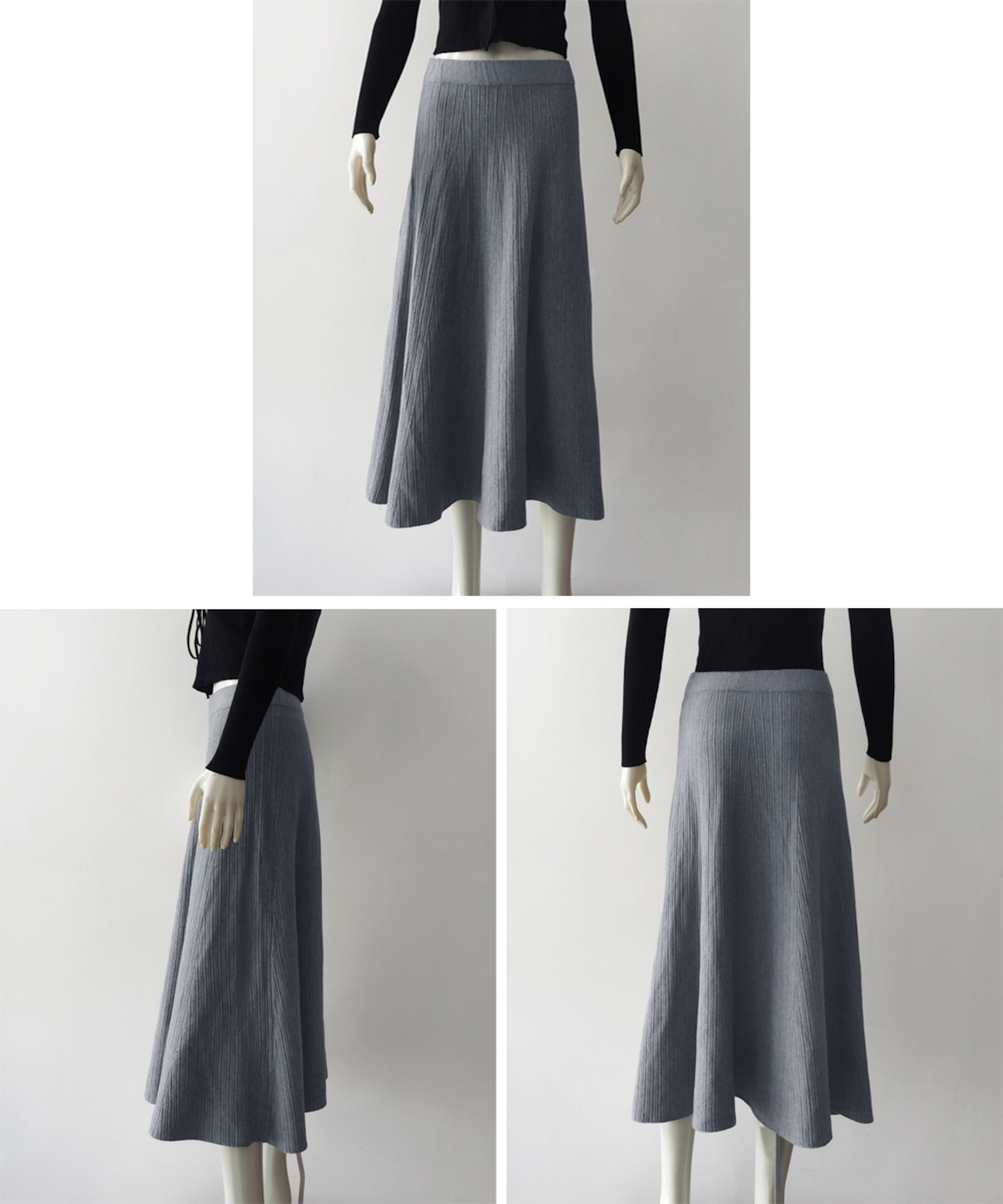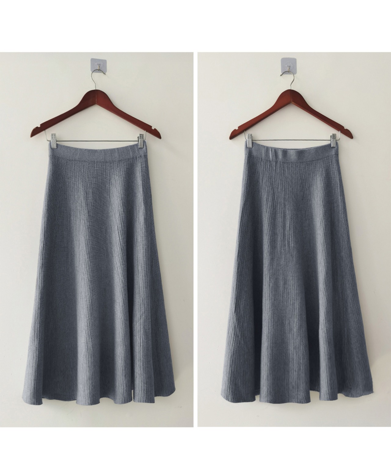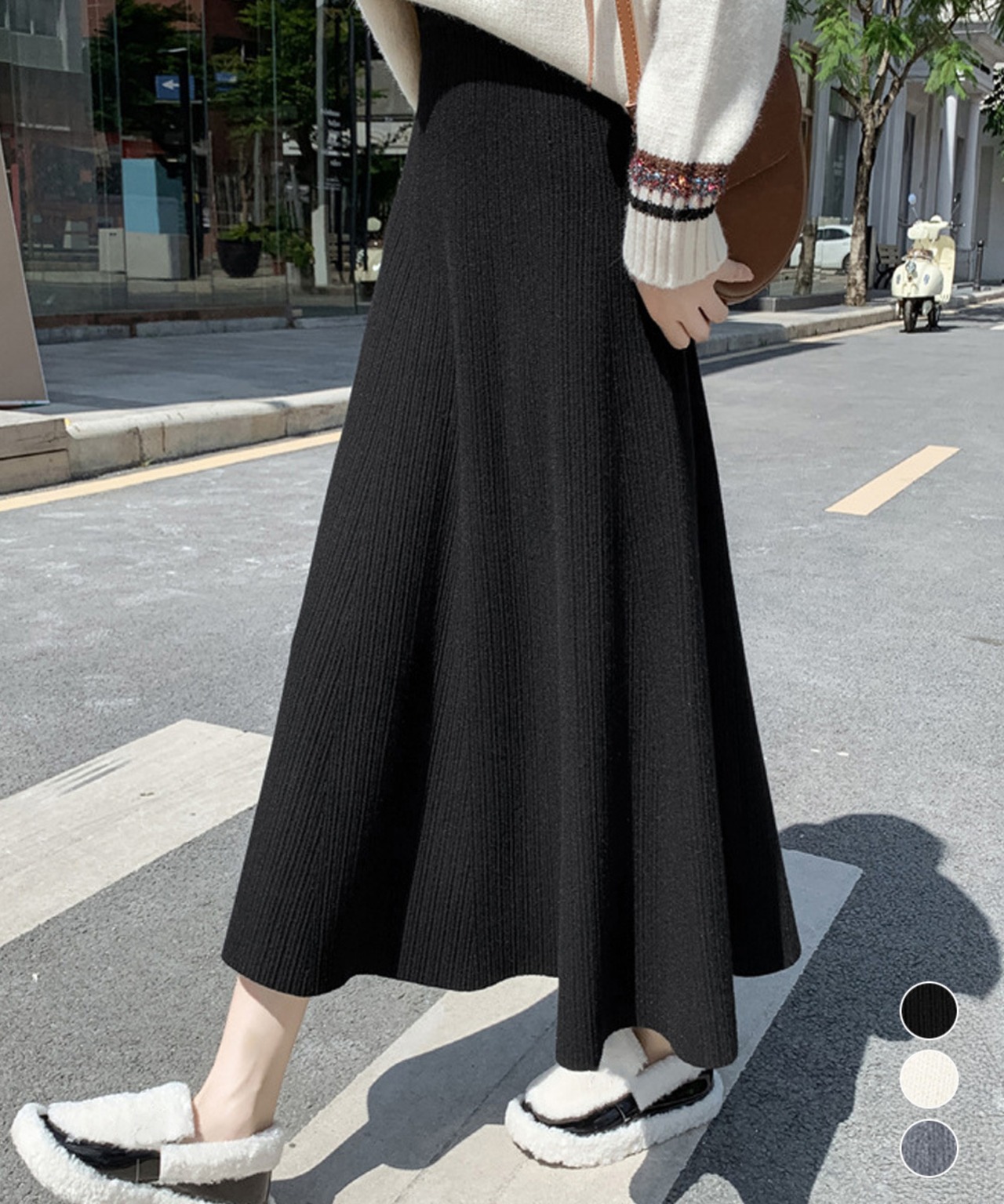 フレアニット スカート 着やせ 無地 秋冬 (SK-0721)