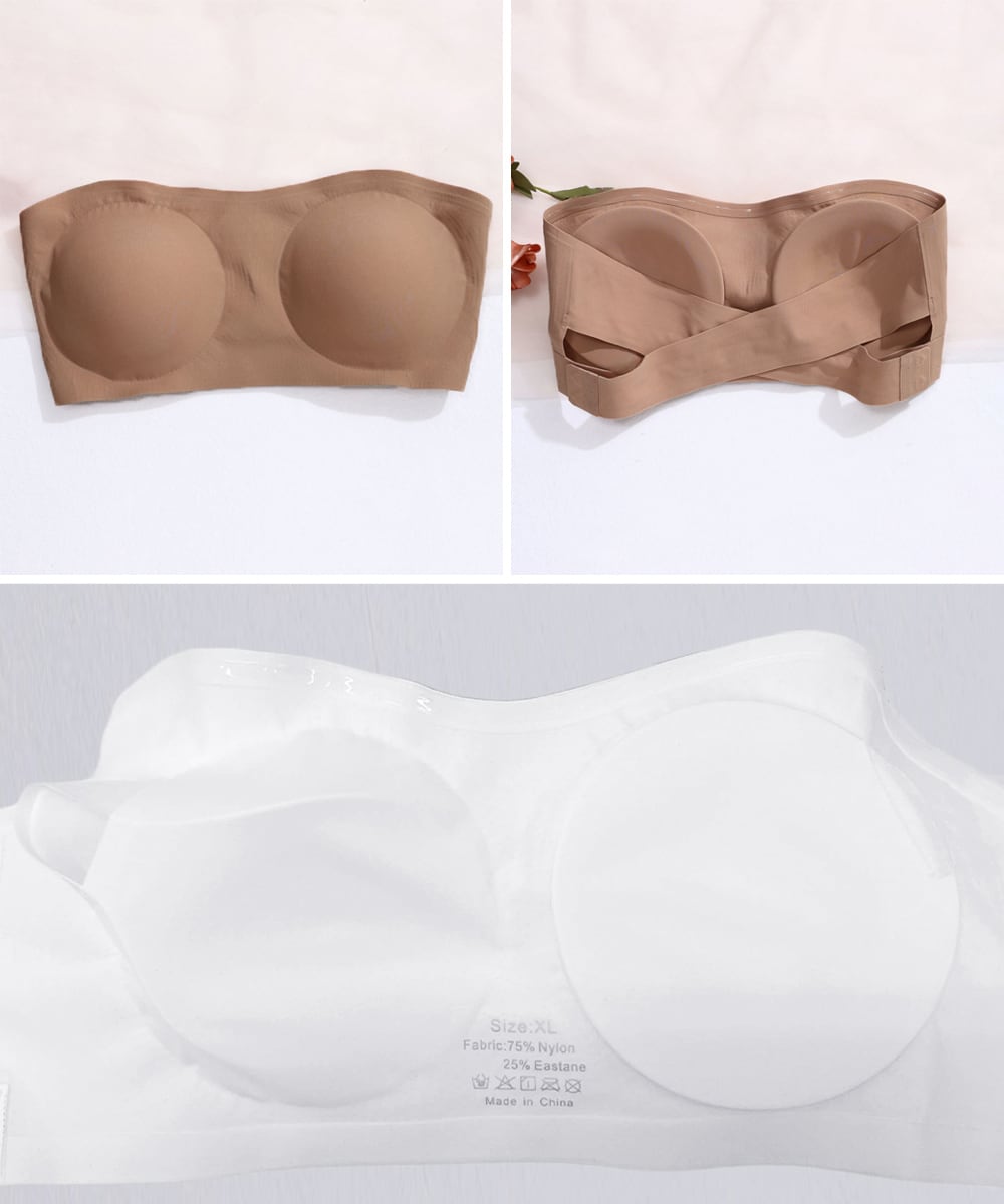 ストラップレスのバンドゥブラで、シンプルながら快適さとスタイリッシュさを兼ね備えた一枚。