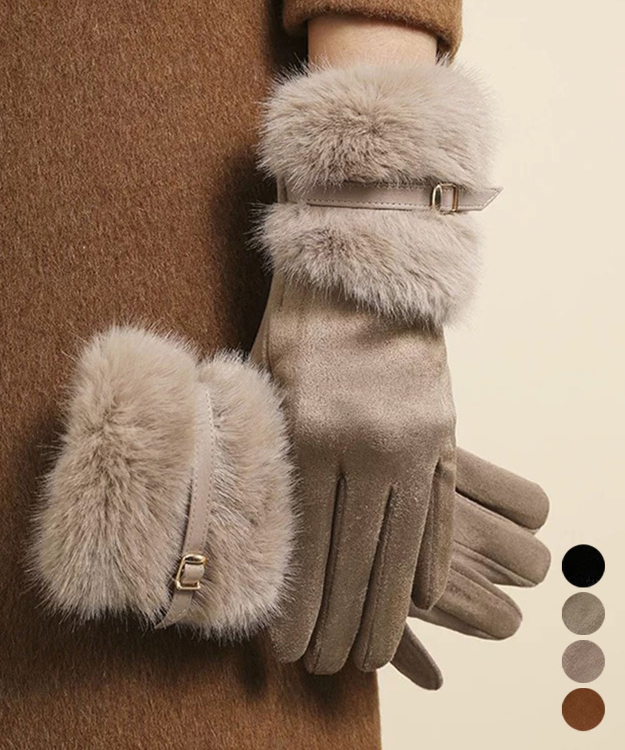 やわらかなスエード調素材にファーをあしらった、上品でフェミニンなデザインの手袋。