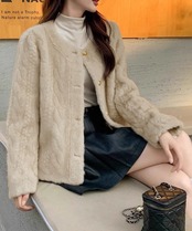 ノーカラーファー ジャケット ゴールドボタン (SK-0937)