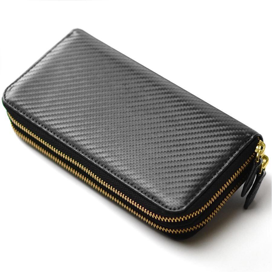 【Merge】カーボン加工 ダブルラウンドファスナー 長財布 MG-1866 2色展開 大容量 Wファスナー式 (FC-0090)