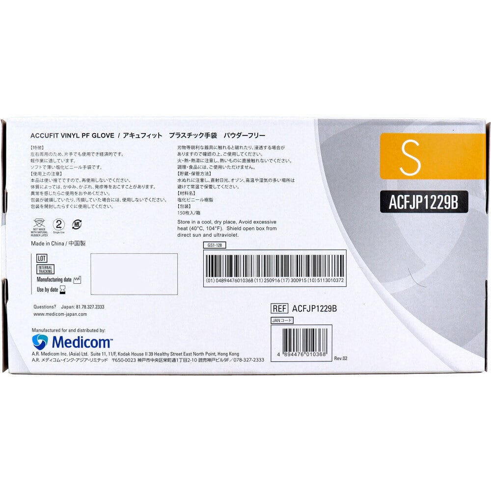 【業務用】アキュフィット プラスチック手袋 パウダーフリー クリアー S 150枚入 (KN-01387)
